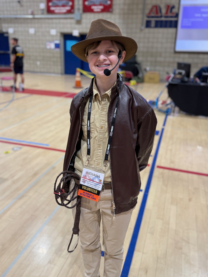 36 FIRST LEGO League Challenge teams advanced from 3 qualifying tournaments to compete at the Central California Championship. “Indiana Jones” was the emcee for all of the festivities. On display were retired (and current) LEGO Education robot sets, an older LEGO trophy, and a prior FIRST LEGO League table throw to celebrate the FIRST AGE season. Teams enjoyed a gym-wide dance party while awaiting the awards ceremony.