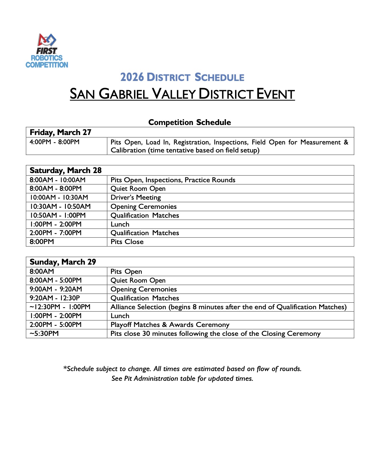The California District San Gabriel Valley Qualifying Event is a high-energy, high-tech spectator sporting event where teams, professionals and young people together solve an engineering design problem in an intense and competitive way. The program is life-changing, career-molding and a lot of fun.